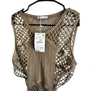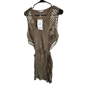 NWT Zara Mesh Green Side Cutout Crochet Mini Dress Size Large