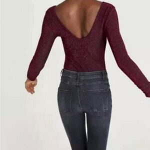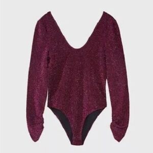 NWT Zara Metallic Purple Bodysuit Top Glitter