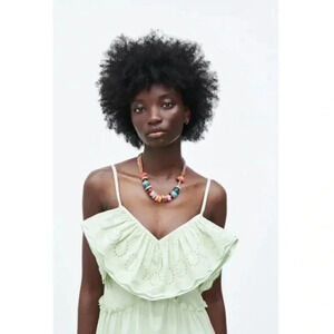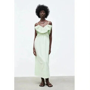 NWT Zara Midi Dress Ruffle Neck Green Size Small