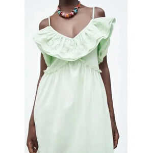 NWT Zara Ruffle Neck Midi Dress in pale green