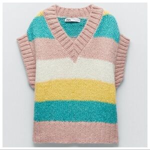 NWT. Zara Multicolor Wool Blend Striped Knit Vest with V-neckline. Size S. Ref. 5802/005. Pit to pit 21" flat, shoulders 22", length 22". SW2.
