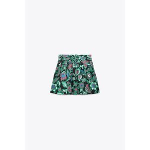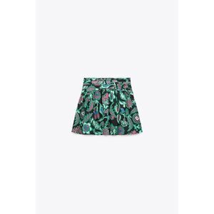 NWT Zara Multicolored Floral Print Linen Blend High Waisted A-Line Mini Skirt
