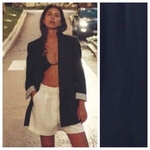 NWT. Zara Navy Blue Linen Blend Open Front Blazer. Size XXL.
