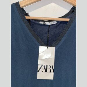 NWT Zara Navy Blue Long Tunic Sheer top Women’s Size L