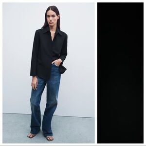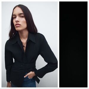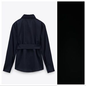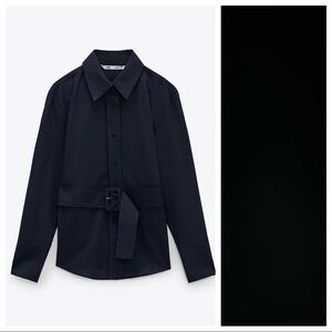 NWT. Zara Navy Blue Navy Blue Buckle Belt Button-down Shirt. Size XS.