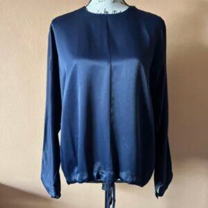 NWT Zara Navy Blue Satin Drawstring Blouse