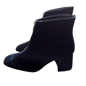 New Zara Navy Crushed Velvet Ankle Boot W/ Block Heel And Front Zipper. Size 7.5