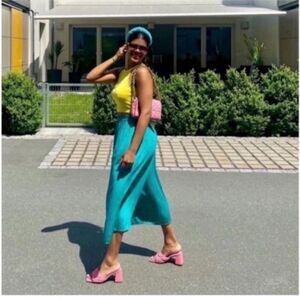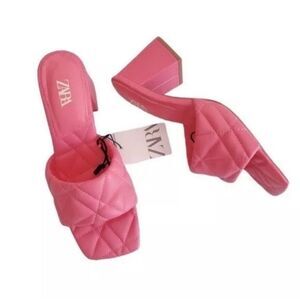 NWT Zara New Bright Pink Quilted Heeled Squared Toe Mules Shoes Sandals size 6
