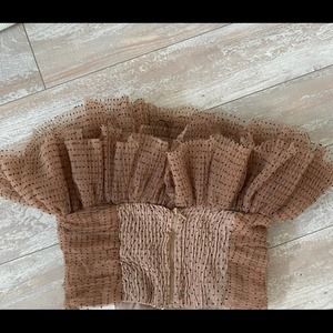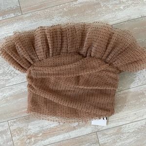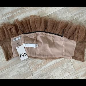 NWT Zara Nude Polka Dot Tulle Ruffle Top Size XS