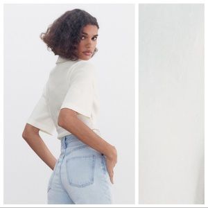 NWT. Zara Off White Stretch Linen Blend Cut-Out Bodysuit. Size S.