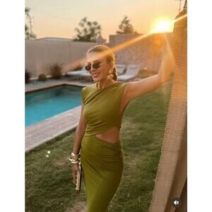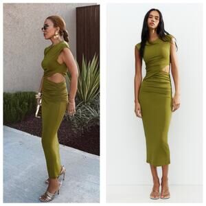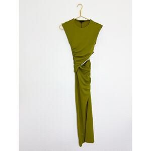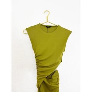 NWT Zara Olive Green Cut Out Ruched Midi Dress Size Small 5039/316 Cocktail Chic
