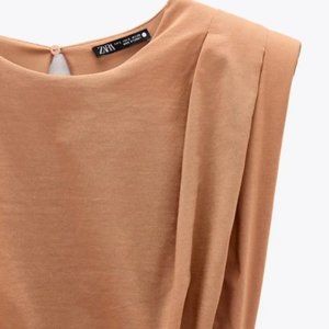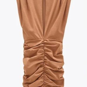 NWT Zara Open Back Gathered with Cinching Brown Dress, sz Large.