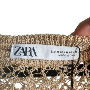 NWT Zara Open Knit Metallic Sweater Beige Gold Size M