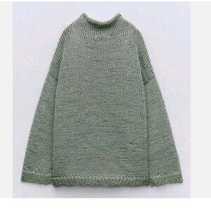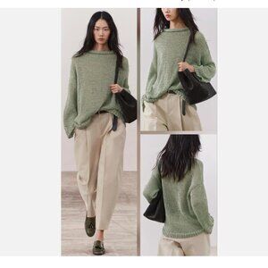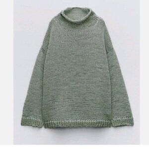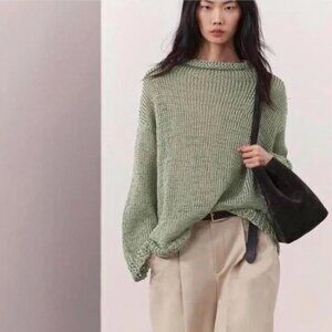 NWT Zara Open Knit Sweater Mint Sage Sheer Drop Shoulder Slouchy Bloggers Fave