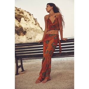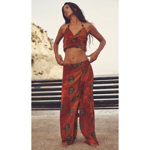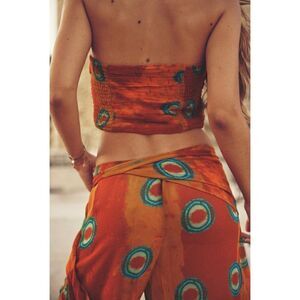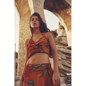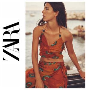 NWT Zara Orange Printed Beaded Halter Crop Top, Size Medium