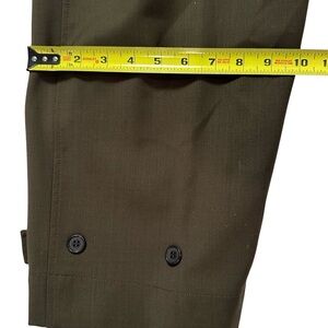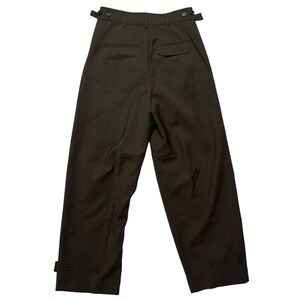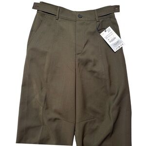 NWT Zara Pants. These olive-green Zara pants feature a high-waisted, cropped design with adjustable side tabs, a button-and-zip closure, and practical side pockets. The tapered legs and clean stitching create a polished, versatile look, perfect for casual or semi-formal styling.