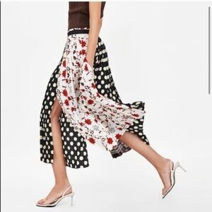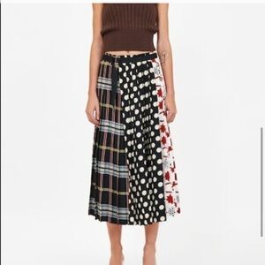 NWT Zara Patchwork Pleated Midi Skirt Size XS