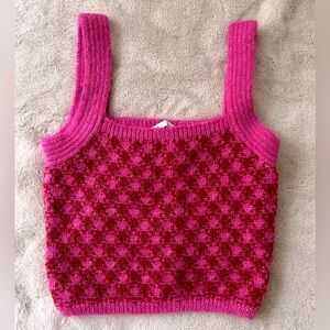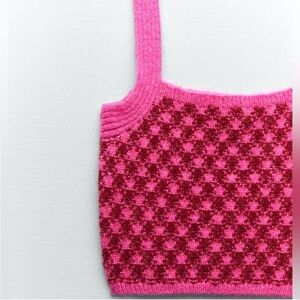 NWT Zara Pink Check Knit Wool Blend Crop Top Size S