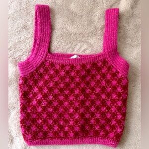 NWT Zara Pink Check Knit Wool Blend Crop Top Size S