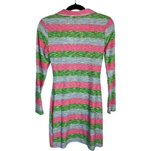 New with tag Zara Pink, Green and Blue Heathered stripe shirt dress size M