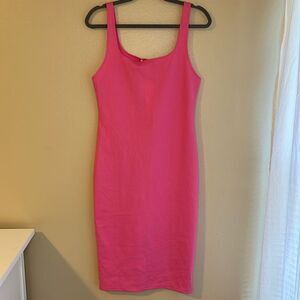 NWT Zara Pink Knit Jersey Midi Scoop Neck Dress Barbiecore XL