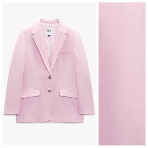 NWT. Zara Pink Oversized Menswear Style Blazer with lapel collar, long sleeves with shoulder pads, front welt pockets with flaps, front closure with contrasting button. Size S. Ref. 2010/728. Pit to pit 20" flat, shoulders 16", sleeves 24", length 30". Back to school.