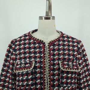 NWT Zara Plaid Boxy Tweed Jacket Black Red M preppy french business causal fall