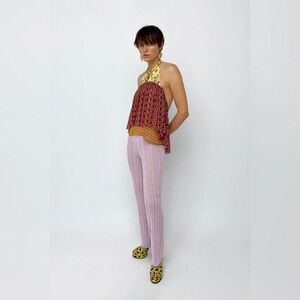 NWT Zara Printed Chiffon Open Back Halter Top in Pink/Orange Size L