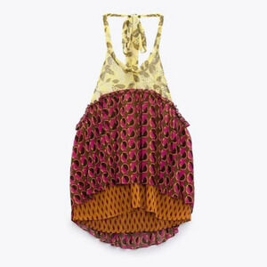 TAGS: zara, nwt, new, bohemian, boho, chiffon, maximalist, eclectic, retro, babydoll, halter, open back, festival, spring, summer, fall, flowy