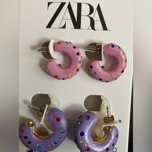 NWT. Zara Purple/Pink Pack of Clay Rhinestone Earrings. Set of two clay earrings with jewelry application. Nail clasp. Ref 4736/076. #3