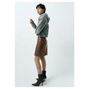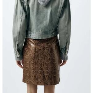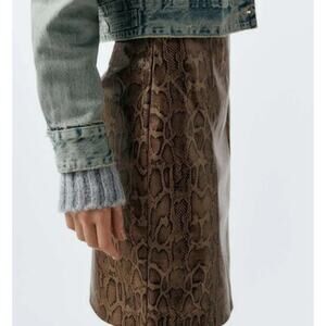 NWT Zara Python Pencil Skirt XS Brown Faux Leather Straight Snakeskin
