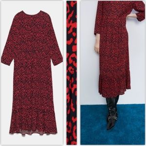๐ฉNWT Zara Red Leopard Printed Dress Size M