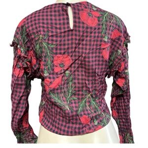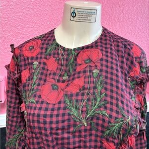 NWT Zara Red and Black Ruffled Graphic Blouse