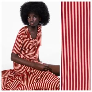 NWT. Zara Red/Yellow Striped Midi Dress. Size M.