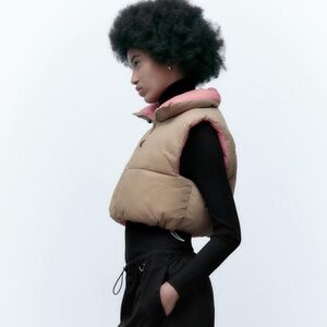 Brand new with tags. Zara. Size small. Pink and tan adorable reversible quilted vest. Semi cropped fit.