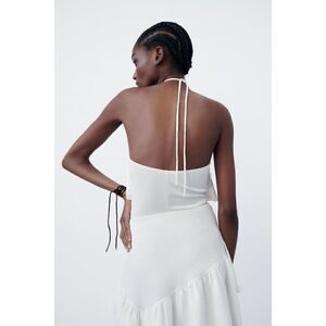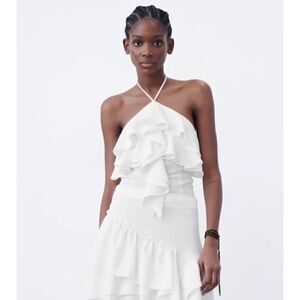 NWT Zara Ruffled Halter Neck Bodysuit in White, Size Small