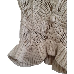 NWT Zara Ruffled Knit Drawstring Top in Cream XS Flounce Hem Tie Front Closure