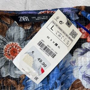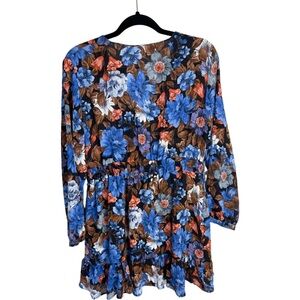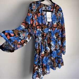 New with tag Zara SHORT FLORAL PRINT DRESS v-neck long sleeve blue color size L