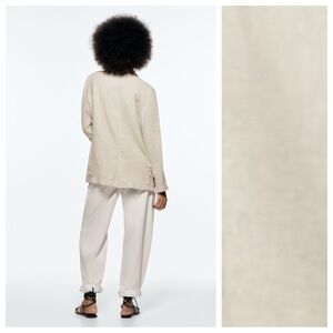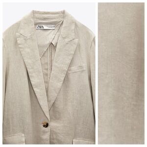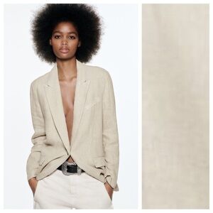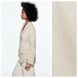 NWT. Zara Sand 100% Linen Blazer/Jacket with Pockets. Size S.