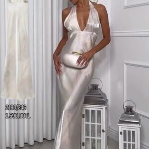 Features: he ZARA Long Satin Halter Dress is a stylish and elegant option for various occasions, such as parties, weddings, and formal events. This dress features a subtle open back detail, a flattering A-line silhouette, and a beautiful white colour that exudes sophistication. Made from a lightweight and waterproof satin fabric, it is perfect for the summer and spring seasons. The dress also includes accents like ruffles and quilted detailing, adding a touch of luxury to the overall design. Ideal for women who love to make a statement with their fashion choices, this ZARA dress is a versatile and timeless addition to any wardrobe.
