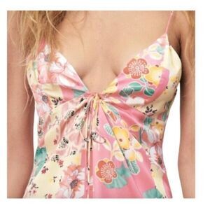 NWT Zara Satin Effect Pink Floral Print Strappy Mini Dress Medium