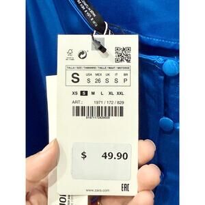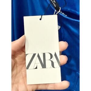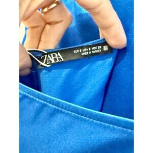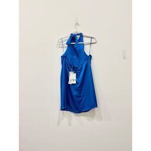 NWT Zara Satin Halterneck Open Back A-Line Mini Dress Royal Blue Women's Size S