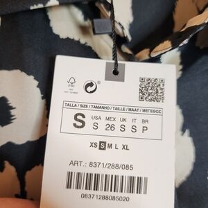 NWT Zara Satin Long Sleeve Button Down Top Leopard Cheetah Black Ivory Small