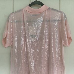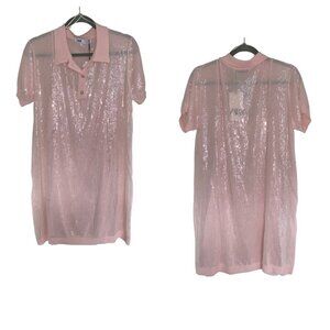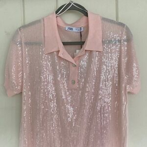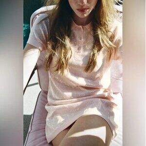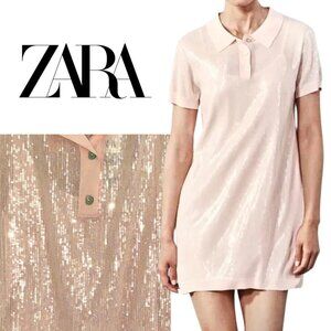 NWT, Zara, Sequin Knit Short Sleeve Mini Polo Collar Dress in Light, Pale Pink
