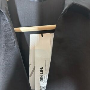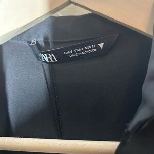 NEW WITH TAGS Zara chic black satin like dress with a deep V-neck and long loose sleeves. Perfect for evening wear.