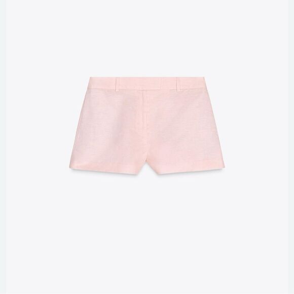New with tags blogger fave Zara short sleeve linen blazer set in pink. Short sleeve fitted linen blazer and mid rise linen Bermuda shorts. Size small. Sold out online.