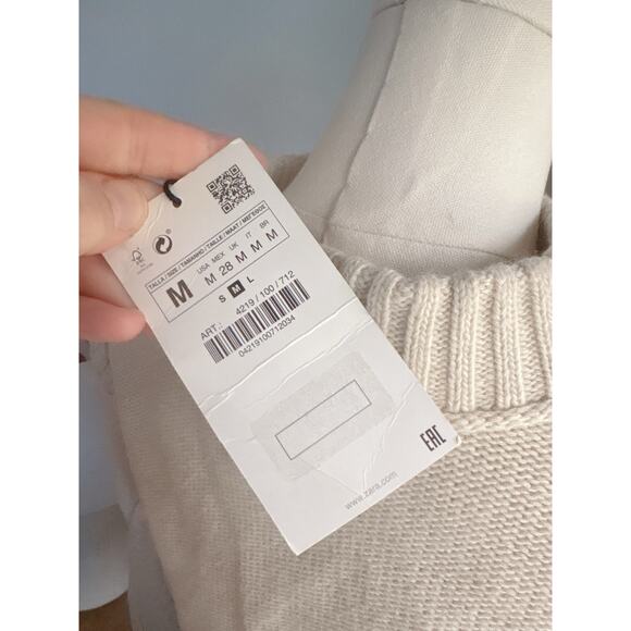 NWT Zara Shoulder Pad Knit Crop Crewneck Sweater Womens Medium Blogger Favorite