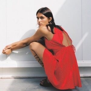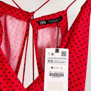 NWT Zara Silky Polka Dot Tie Back Mini Dress Red & Black