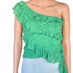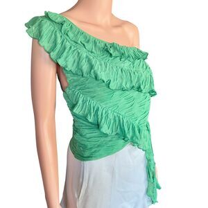 Zara Size L Green Ruffled Asymmetrical One-Shoulder Crop Top Vacation