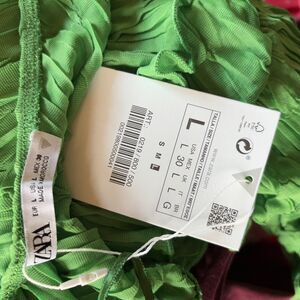 NWT Zara Size L Green Ruffled Asymmetrical One-Shoulder Crop Top Vacation